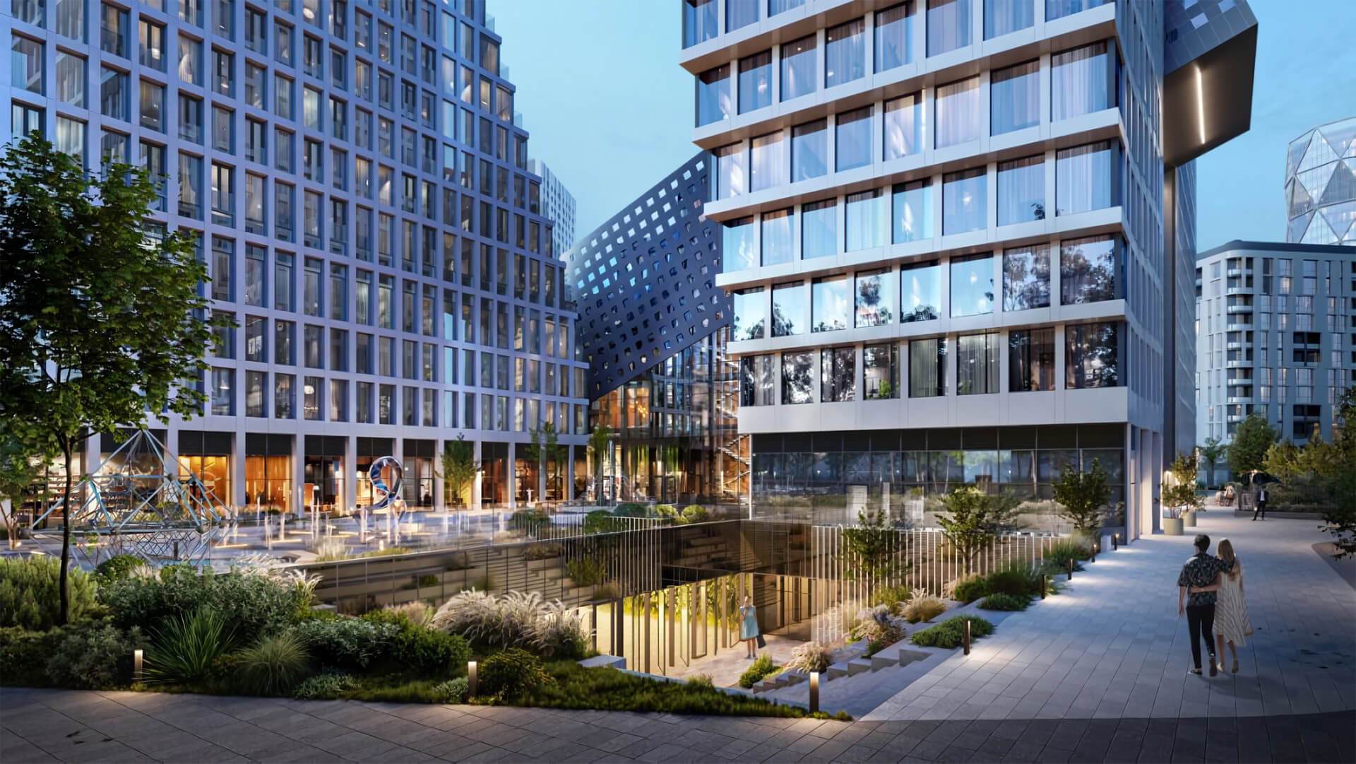 Фонтаны, чилаут-зоны, игровые комплексы и спортивные площадки делают территорию комфортной для всех возрастов. Подсветка, архитектурные элементы и ландшафтный дизайн подчеркивают эстетическую привлекательность комплекса.
