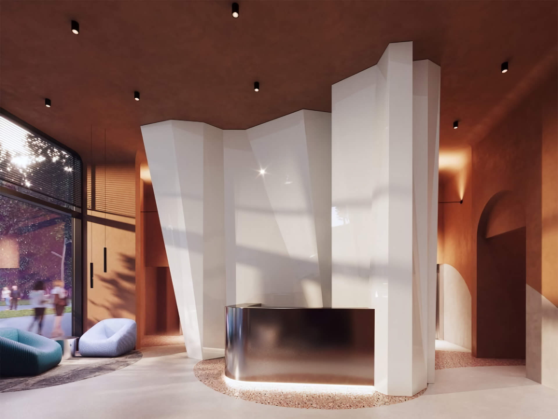 Пространства общего пользования в Emotion отражают философию комфорта и уюта. Дизайн интерьеров вдохновлен природными мотивами: округлые арки, бионические формы и металлические поверхности создают атмосферу гармонии и спокойствия.